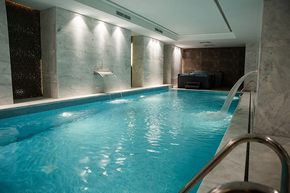 A wellness center with a swimming pool, jacuzzi, and steam room for unmatched relaxation.